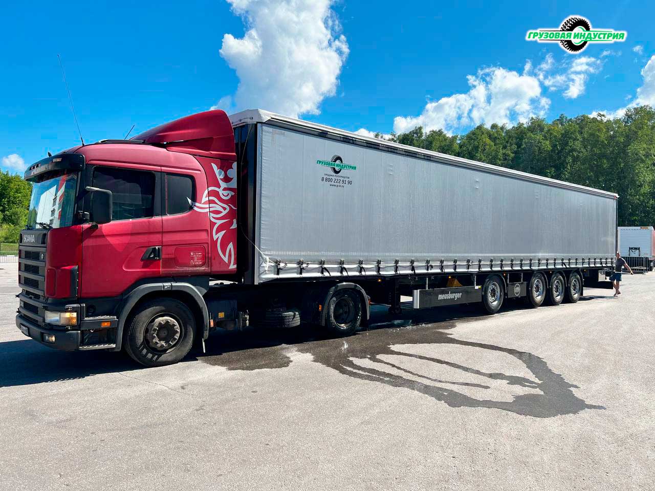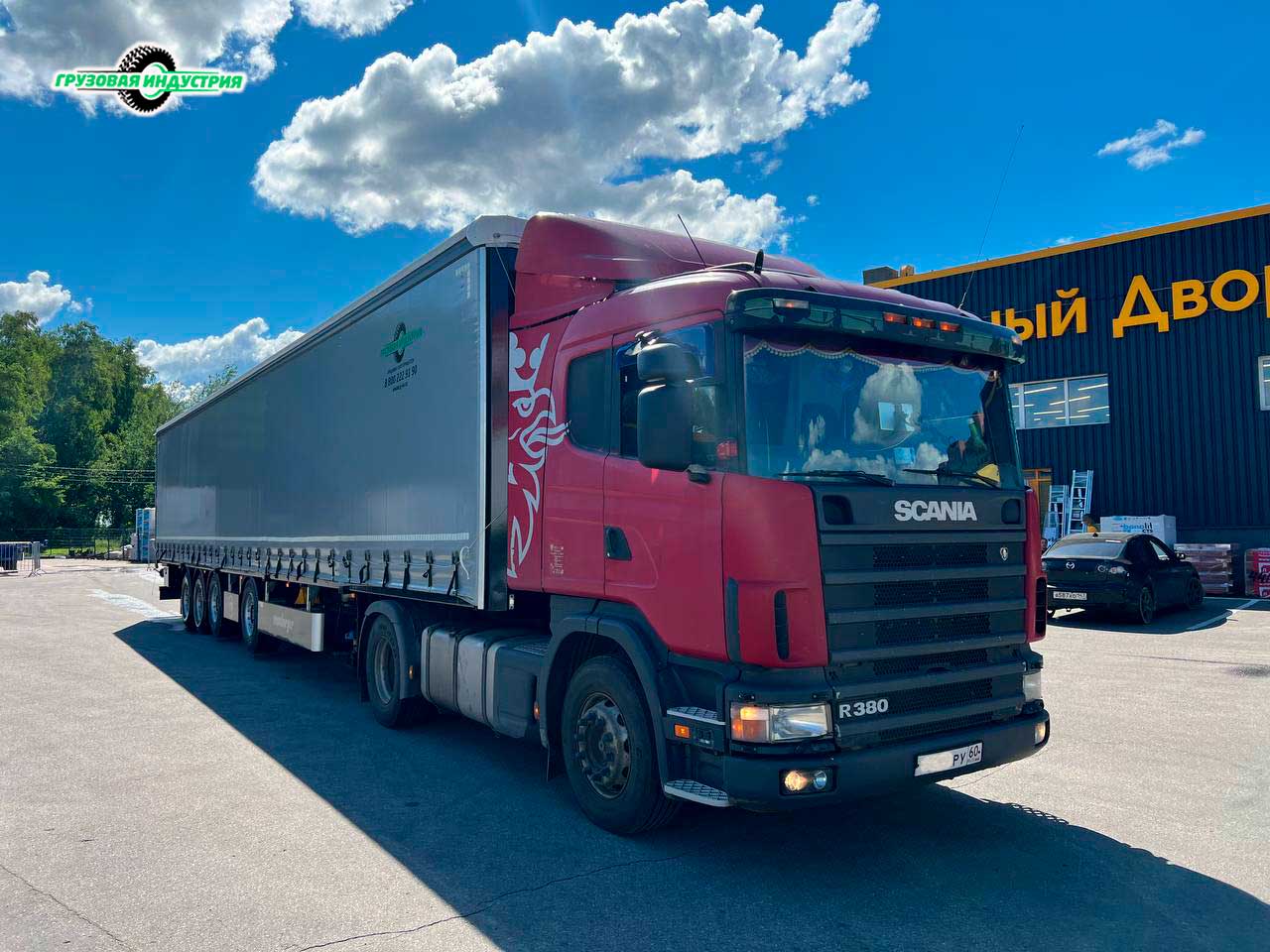 Отгрузка сцепки Scania 4x2 и шторного полуприцепа Meusburger Новтрак SP-451в г. Псков.